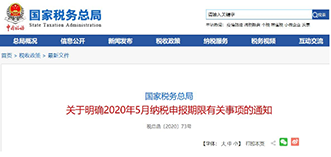 關(guān)于明確2020年5月納稅申報(bào)期限有關(guān)事項(xiàng)的通知稅總函〔2020〕73號(hào)